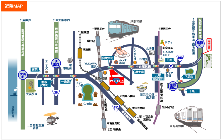 JR阪和線【三国ヶ丘駅】より徒歩10分。