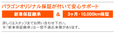 新車保証継承+3ヶ月無償保証(パラゴンオリジナル保証)